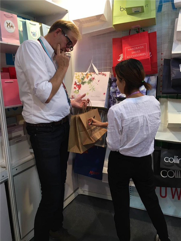 本次展會上海麥禾包裝展出的產(chǎn)品主要是各類紙質(zhì)包裝袋,主要有服裝袋、禮品袋、食品袋、打包袋等。
